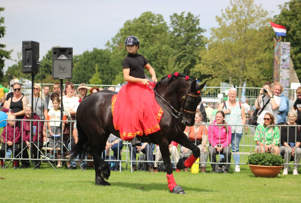 Emma Lynn Vries is 13 jaar en actief in zowel dressuur en working equition. Ze rijdt meerdere pony’s en paarden en heeft al vele wedstrijden op haar naam staan. Ook het rijden van shows vindt Emma Lynn superleuk. Wedstrijden rijden en blijven groeien in de sport staan voor haar centraal.