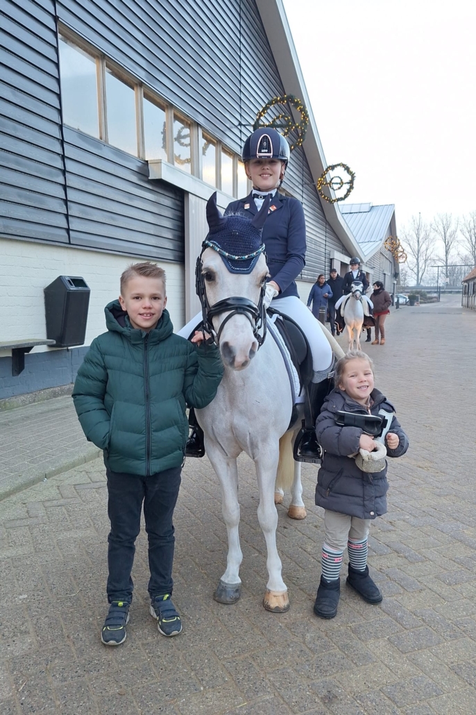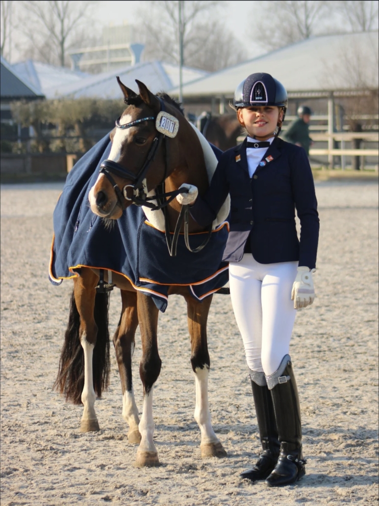 Vajèn Casteleijn is 12 jaar en een enthousiaste pony-amazone. Ze rijdt meerdere pony’s, waaronder haar toppony Charno, waarmee ze dressuur- en springwedstrijden rijdt en mooie resultaten neerzet. Vajèn brengt veel tijd door op stal en traint fanatiek om steeds beter te worden in de sport. Voor haar draait het om plezier, groeien in het zadel en samen mooie momenten beleven met haar pony’s.