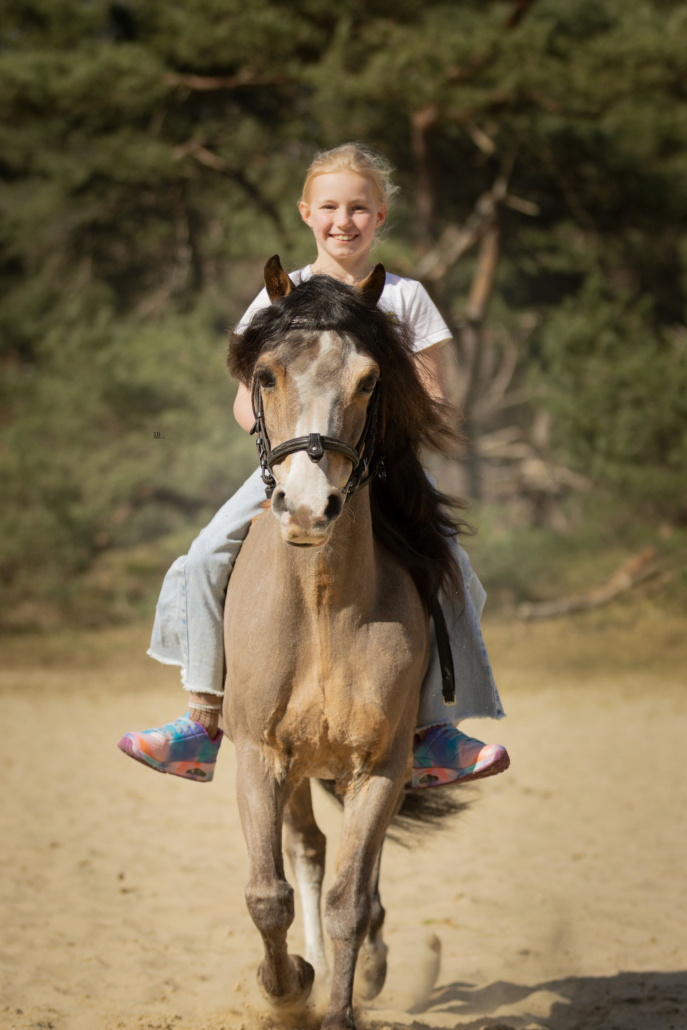 Vajèn Sikkens is 10 jaar en rijdt al paard sinds haar derde. Ze heeft vier pony’s – Cas, Fenna, Joris en Markus – en houdt ervan om trucjes te doen en te galopperen. Ze droomt ervan om later mee te doen aan de Olympische Spelen en houdt naast paardrijden van zingen en skiën.